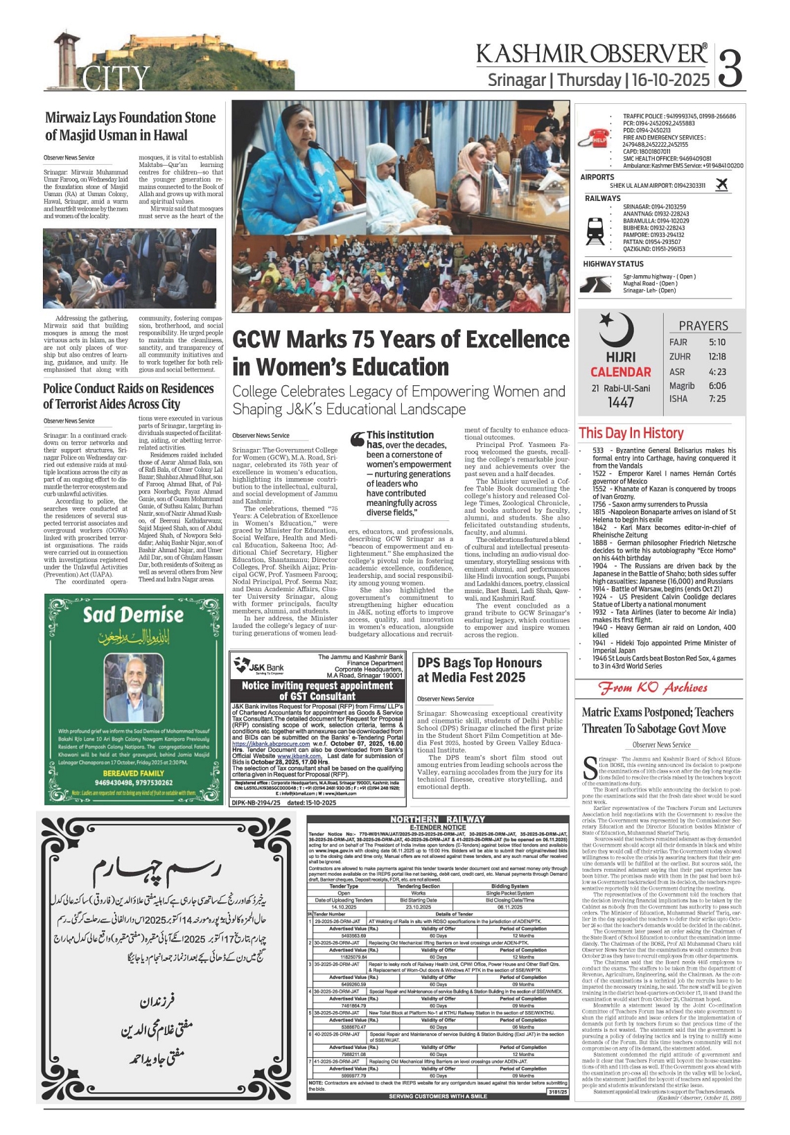 Kashmir Observer 16 October 2025 Page: 3 Kashmir Observer × Kashmir Observer 16 October 2025 Full PDF