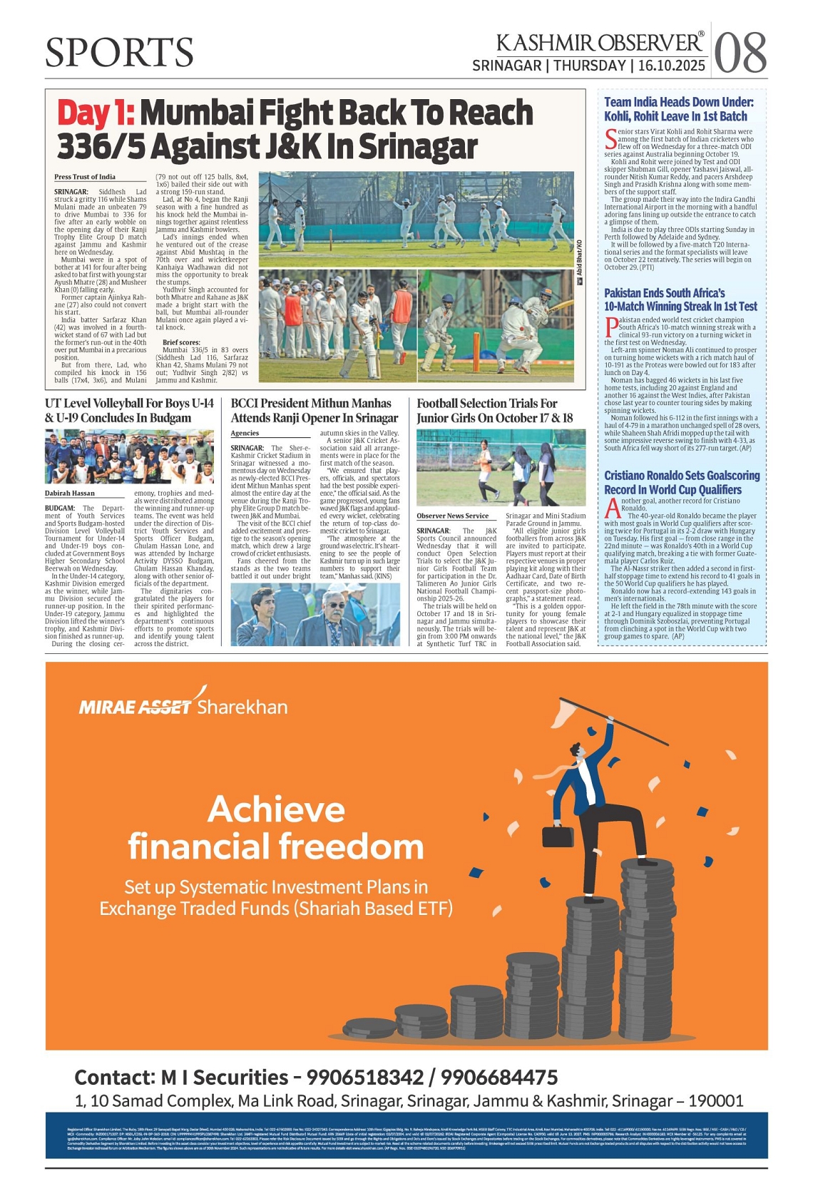 Kashmir Observer 16 October 2025 Page: 8 Kashmir Observer × Kashmir Observer 16 October 2025 Full PDF