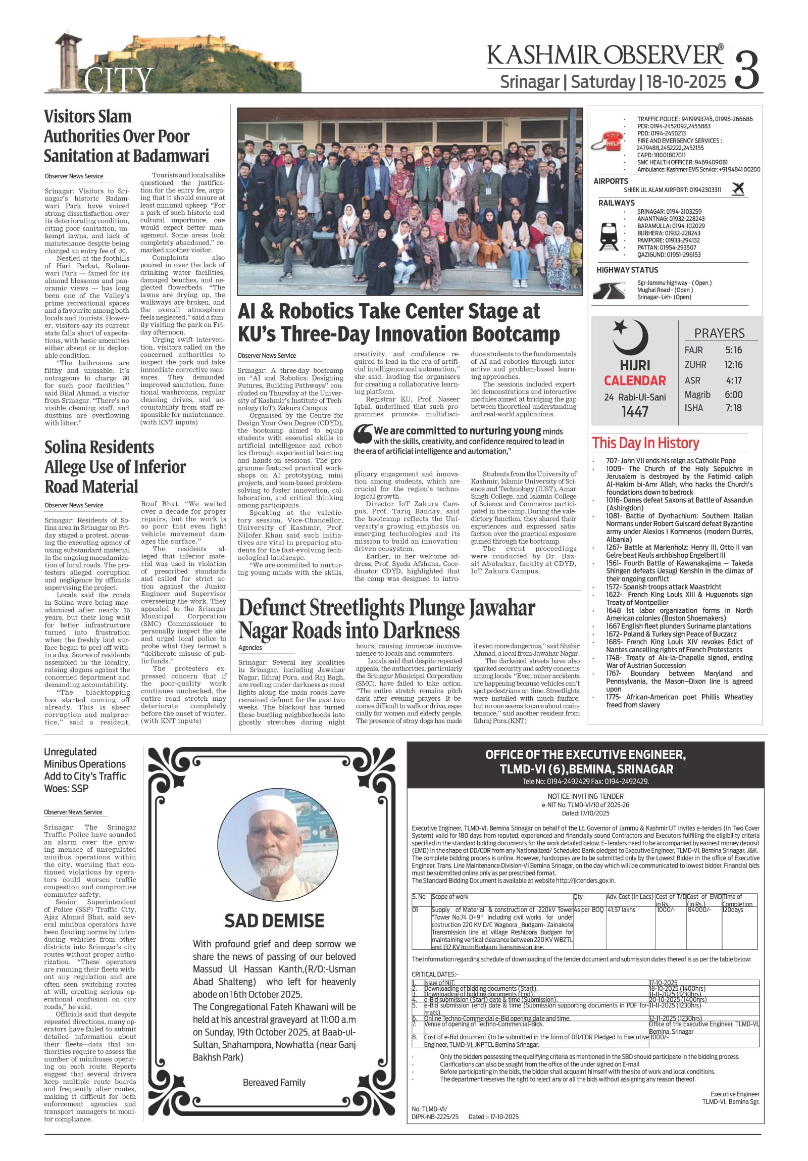 Kashmir Observer 18 October 2025 Page: 3 Kashmir Observer × Kashmir Observer 18 October 2025 Full PDF