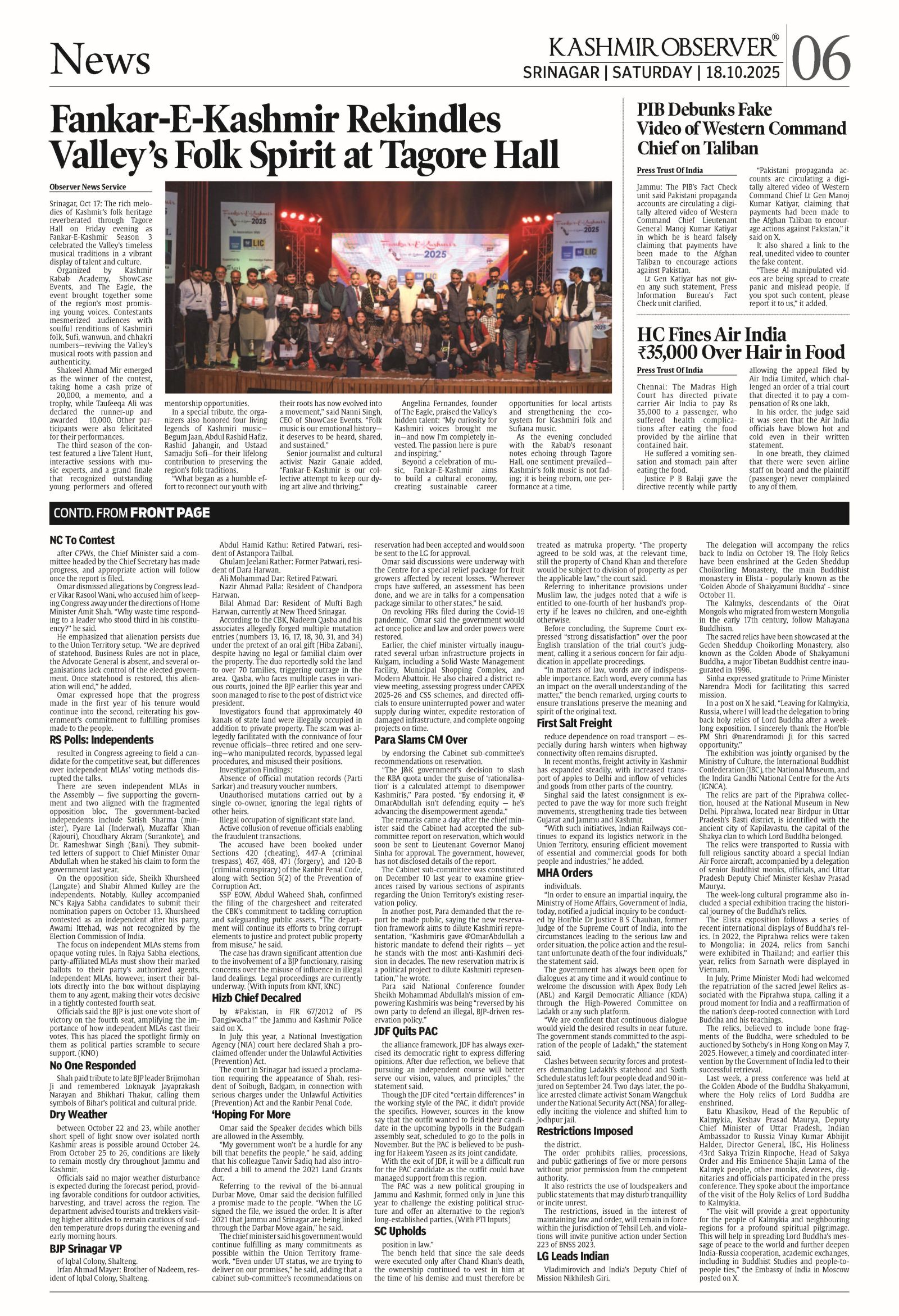 Kashmir Observer 18 October 2025 Page: 6 Kashmir Observer × Kashmir Observer 18 October 2025 Full PDF