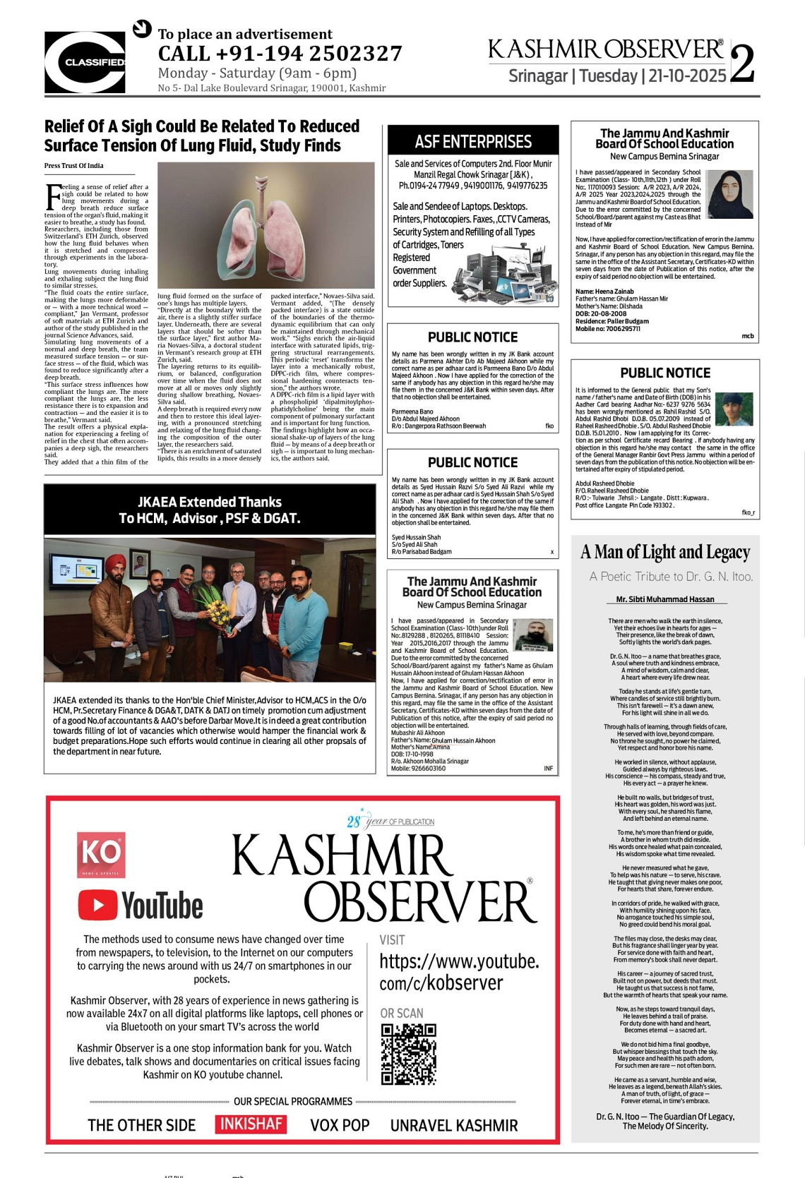 Kashmir Observer 21 October 2025 Page: 2