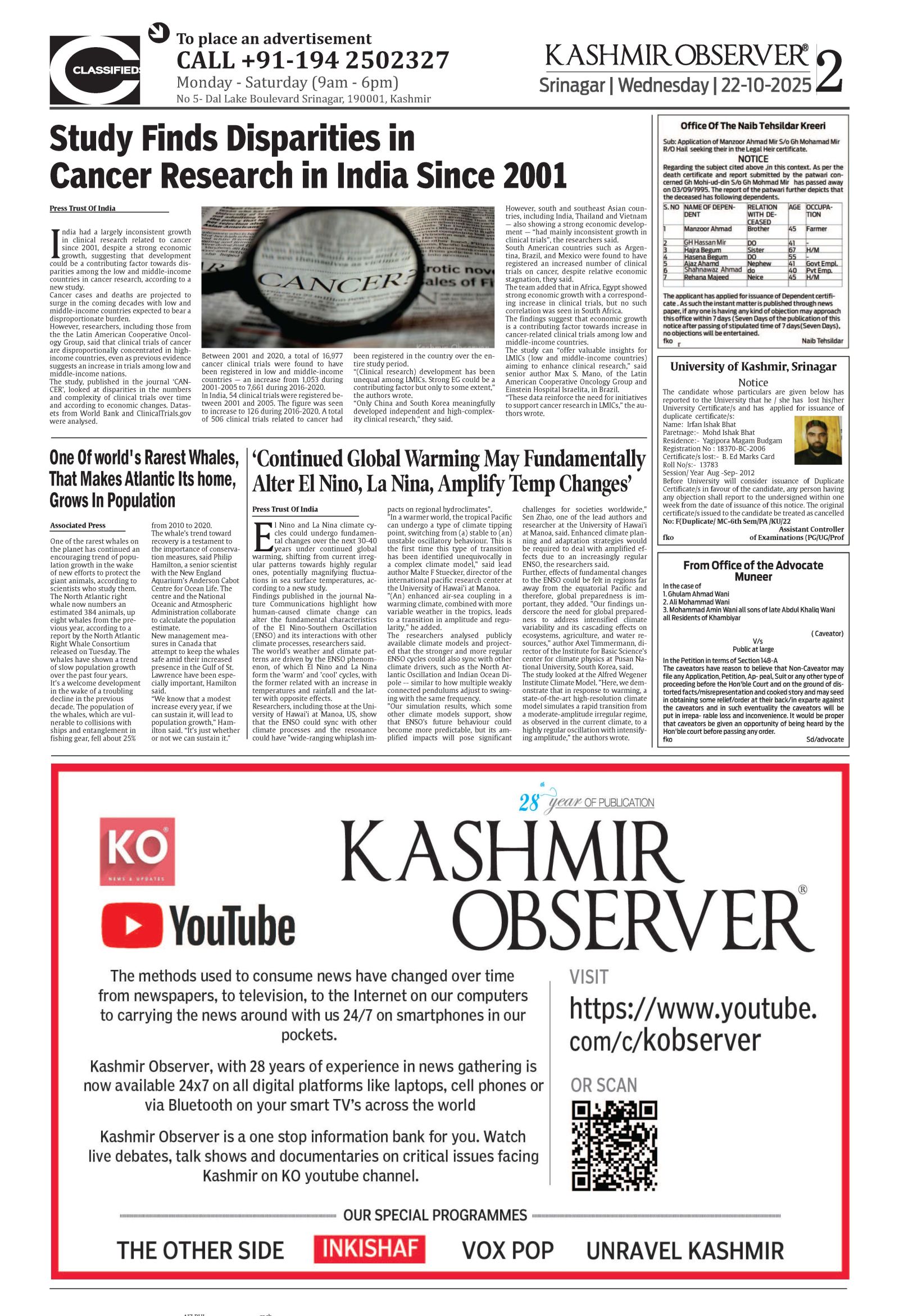 Kashmir Observer 22 October 2025 Page: 2 Kashmir Observer × Kashmir Observer 22 October 2025 Full PDF