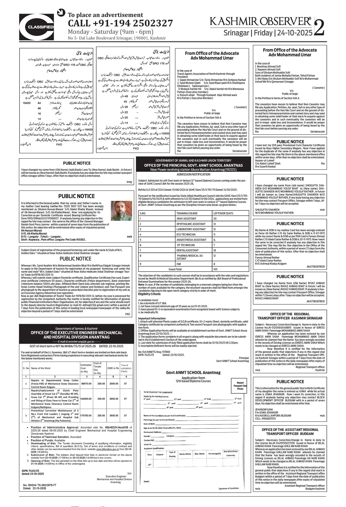 Kashmir Observer 24 October 2025 Page: 2 Kashmir Observer × Kashmir Observer 24 October 2025 Full PDF