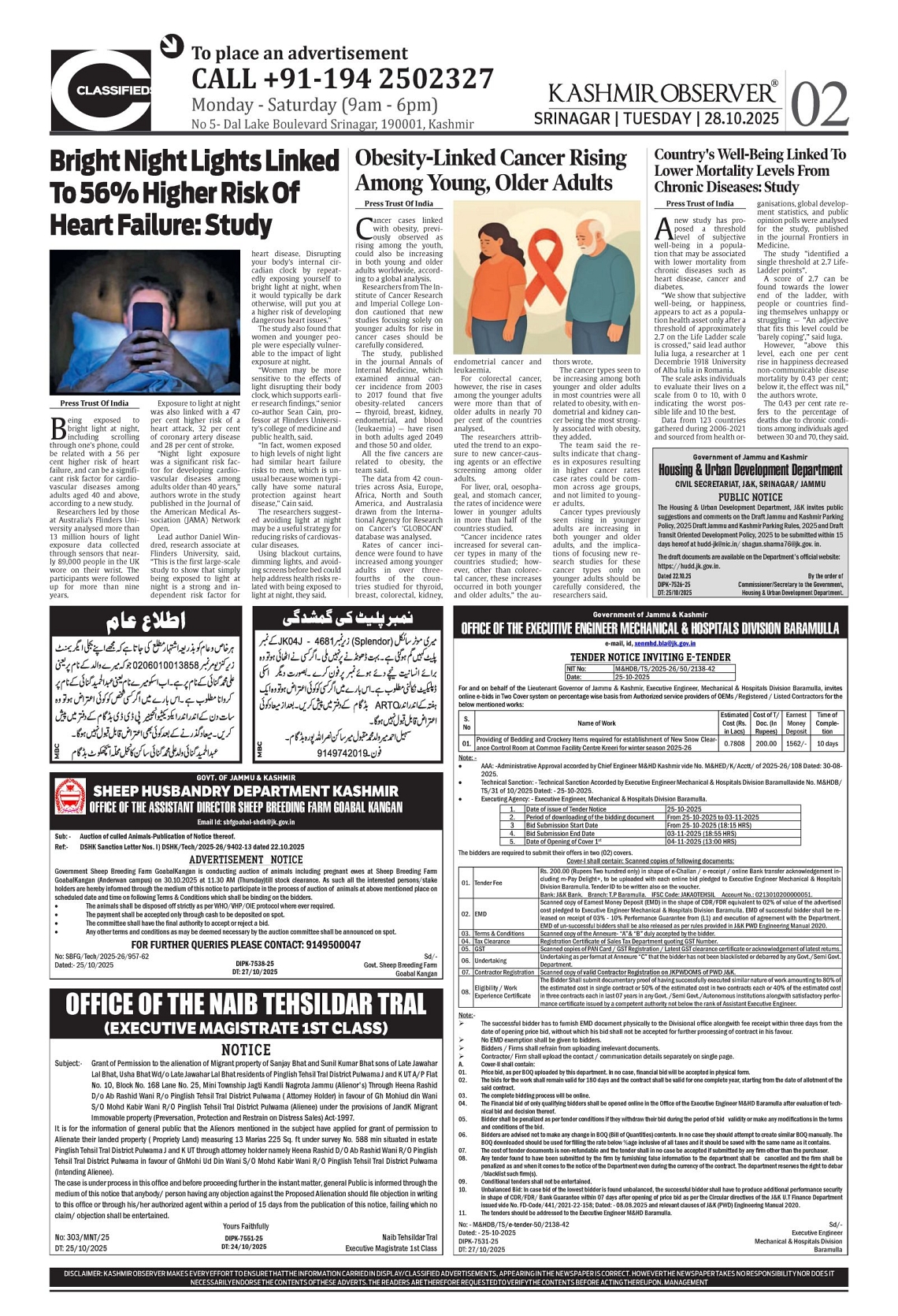 Kashmir Observer 28 October 2025 Page: 2 Kashmir Observer × Kashmir Observer 28 October 2025 Full PDF