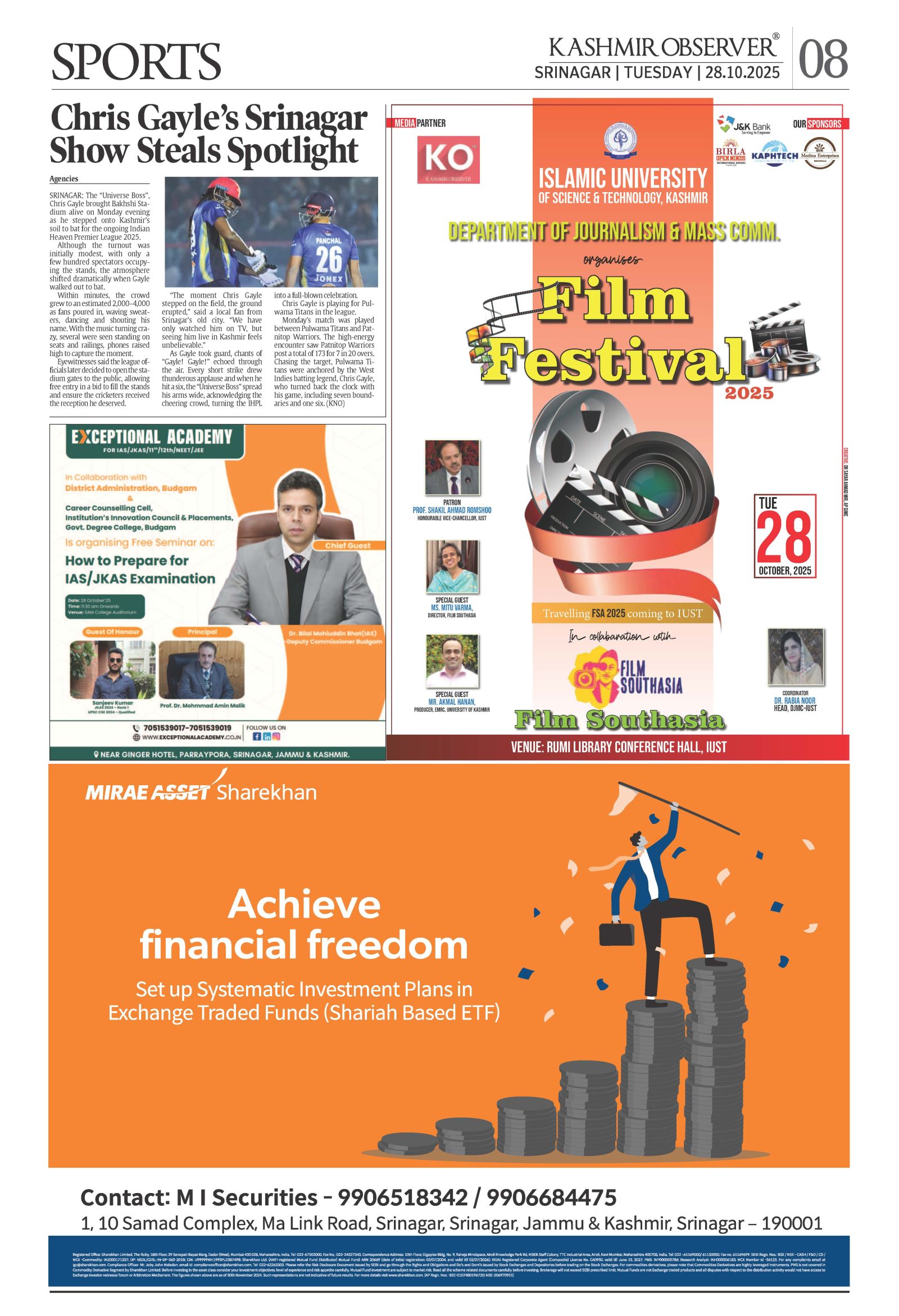 Kashmir Observer 28 October 2025 Page: 8 Kashmir Observer × Kashmir Observer 28 October 2025 Full PDF