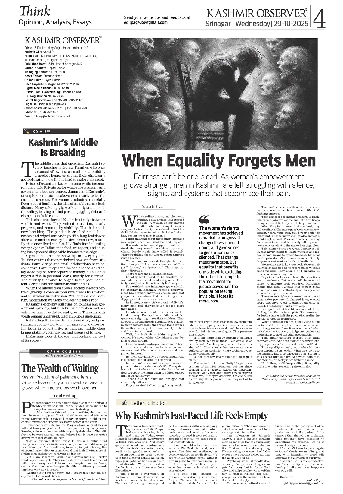 Kashmir Observer 29 October 2025 Page: 4 Kashmir Observer × Kashmir Observer 29 October 2025 Full PDF