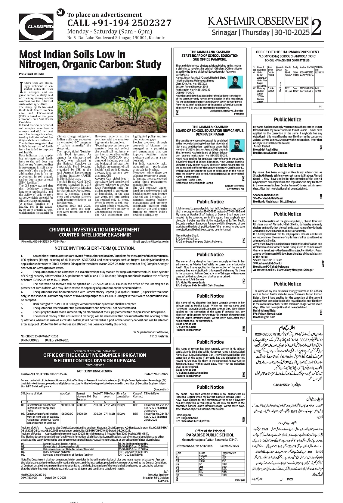 Kashmir Observer 30 October 2025 Page: 2 Kashmir Observer × Kashmir Observer 30 October 2025 Full PDF