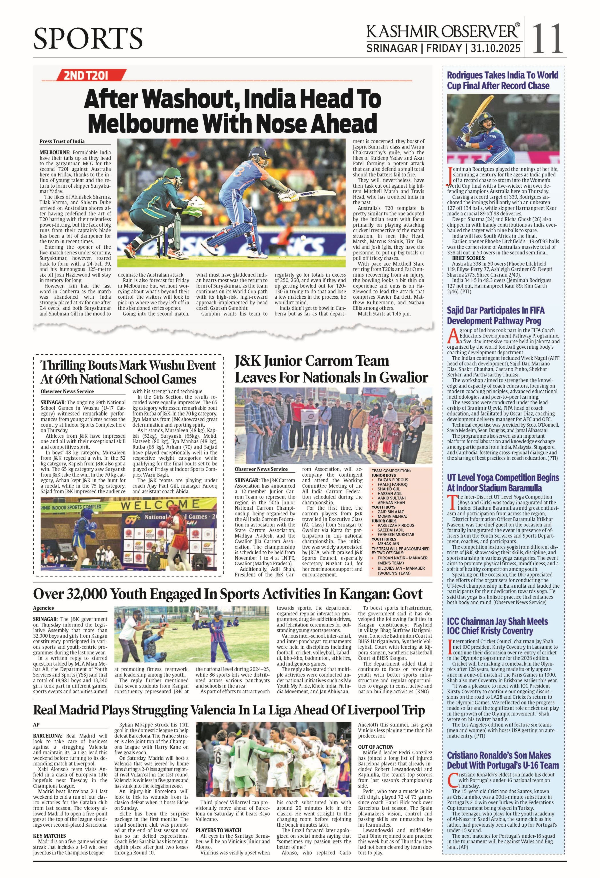 Kashmir Observer 31 October 2025 Page: 11 Kashmir Observer × Kashmir Observer 31 October 2025 Full PDF
