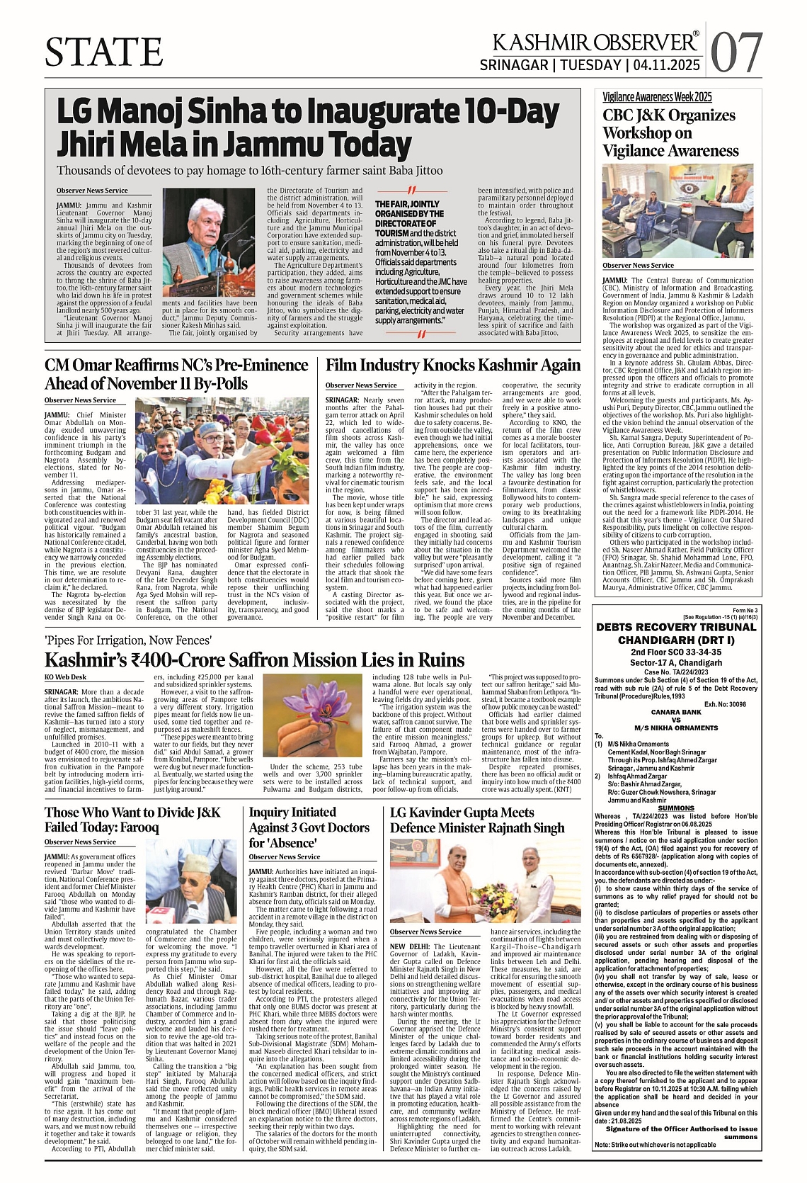 Kashmir Observer 04 Nov 2025 Page: 7
