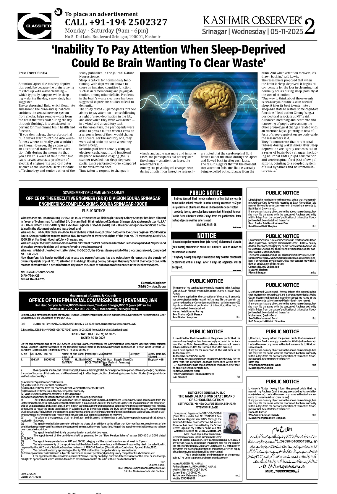 Kashmir Observer 05 Nov 2025 Page: 2