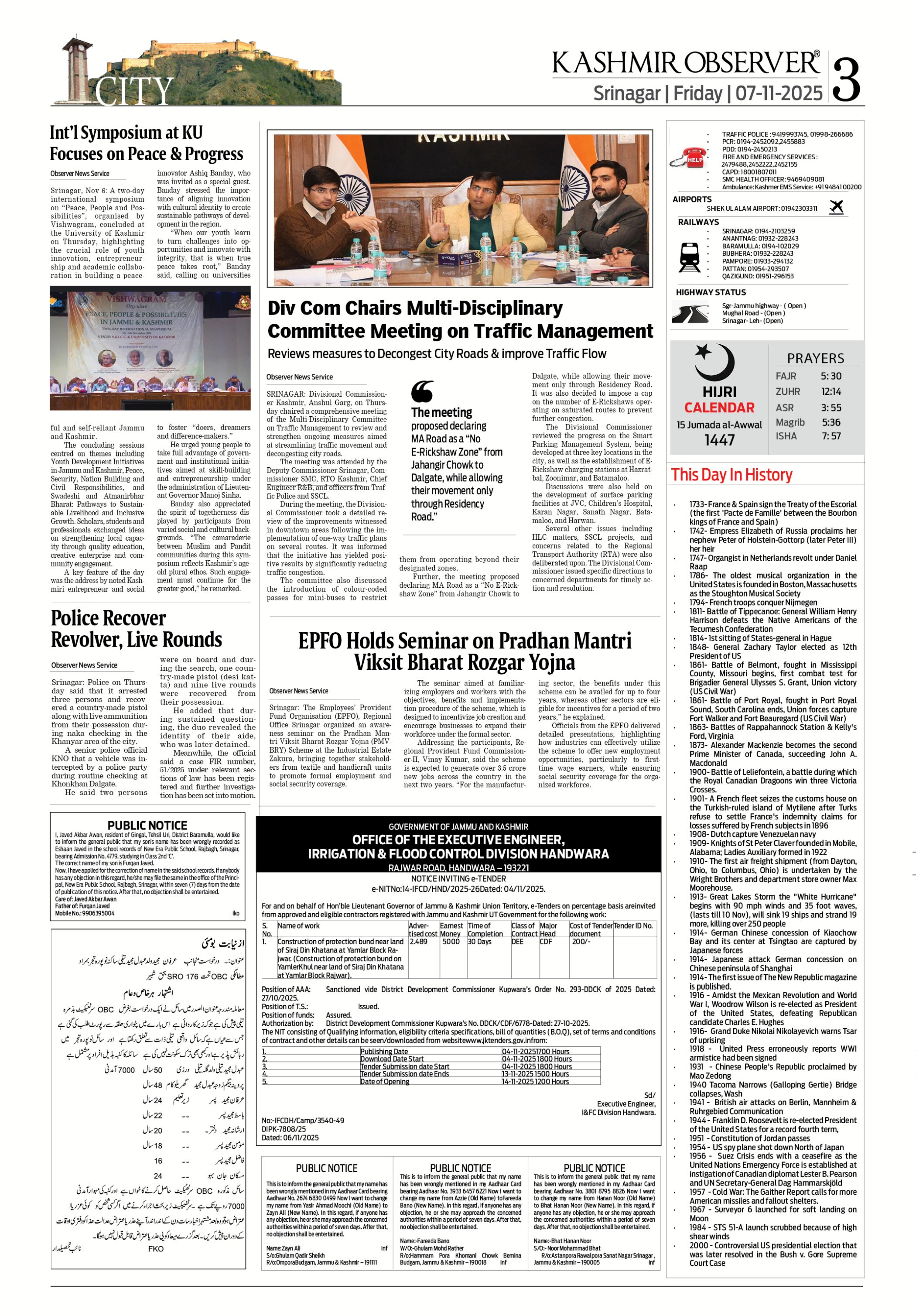 Kashmir Observer 07 Nov 2025 Page: 3