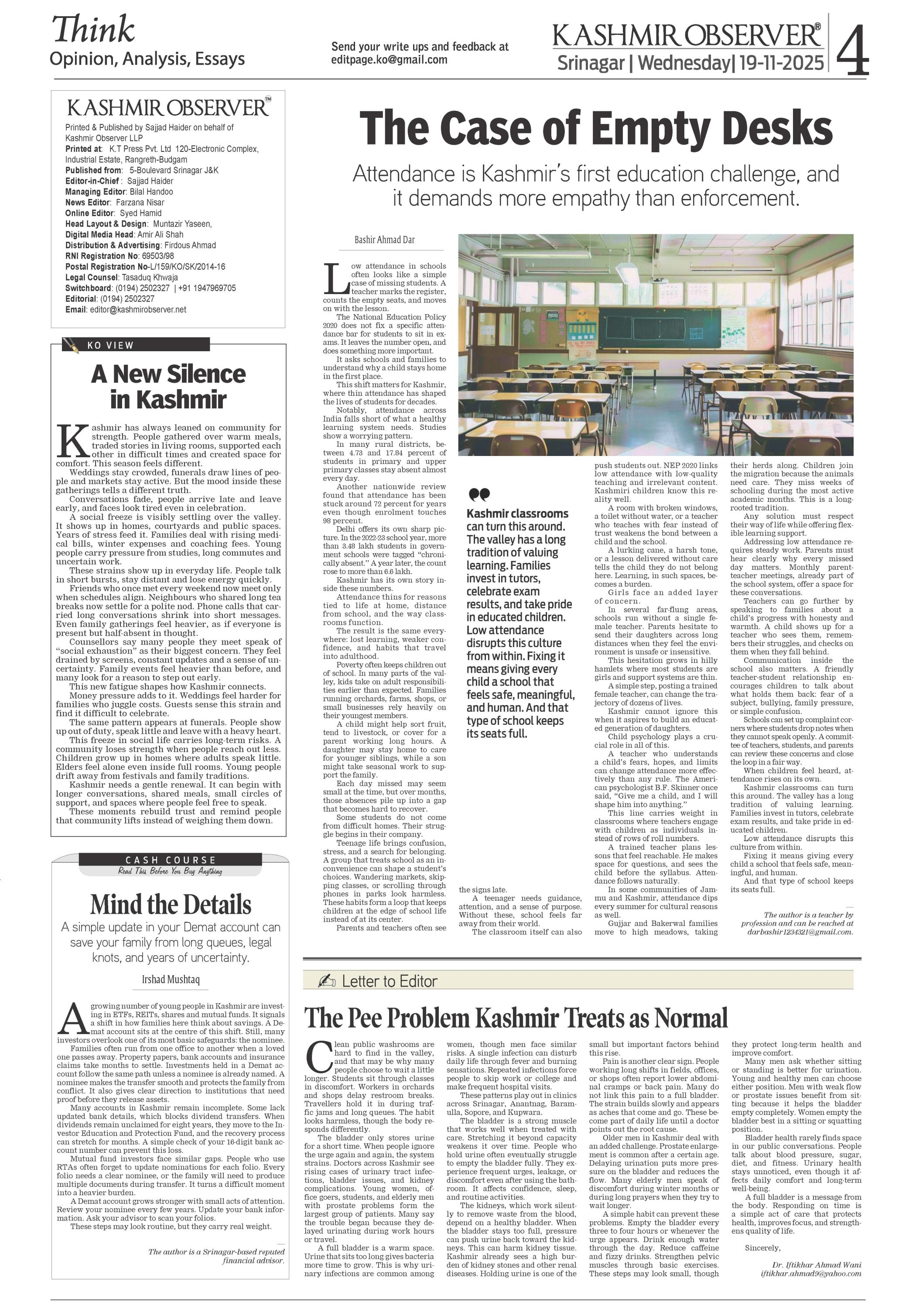 Kashmir Observer 19 Nov 2025 Page: 4