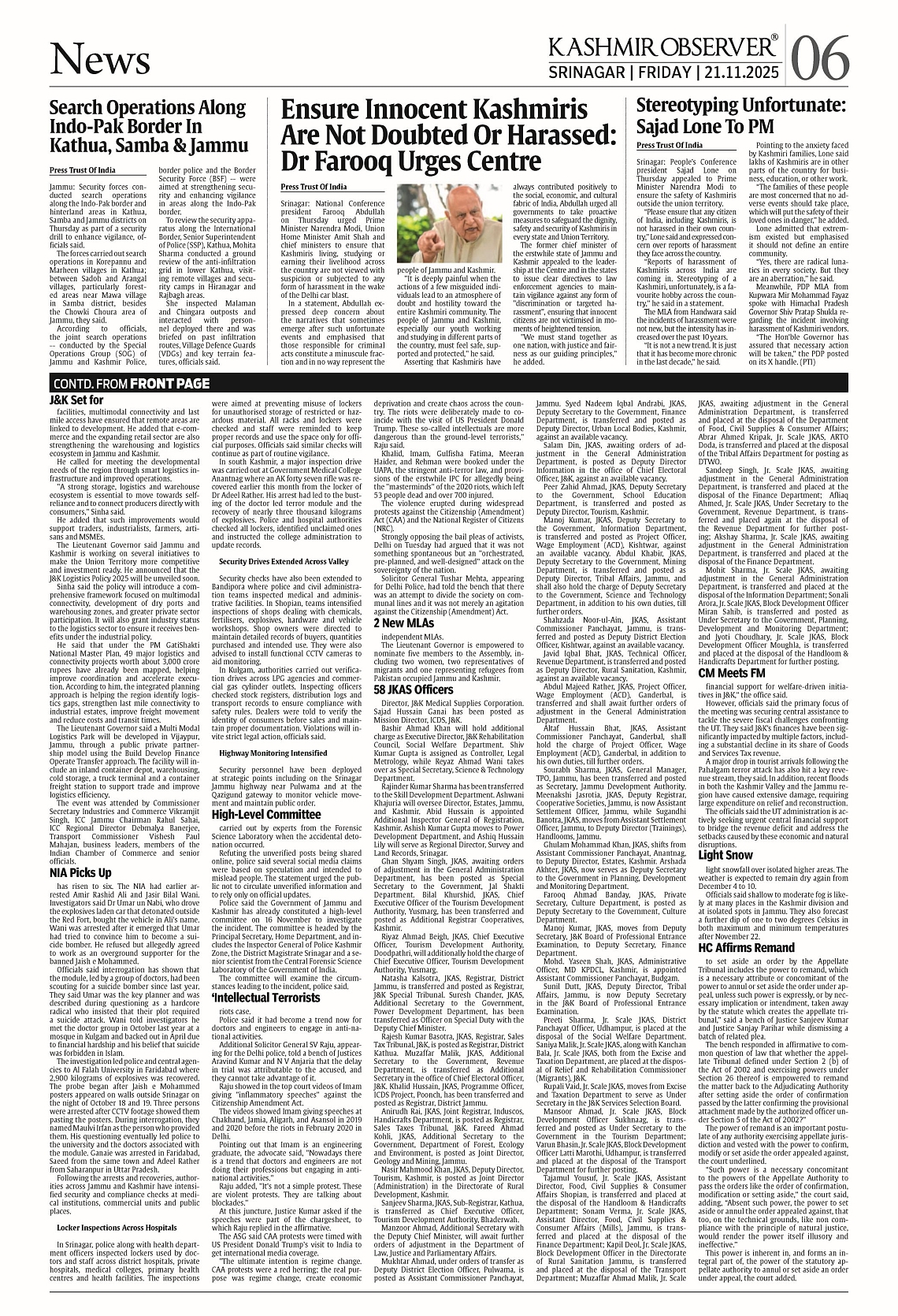 Kashmir Observer 21 Nov 2025 Page: 6