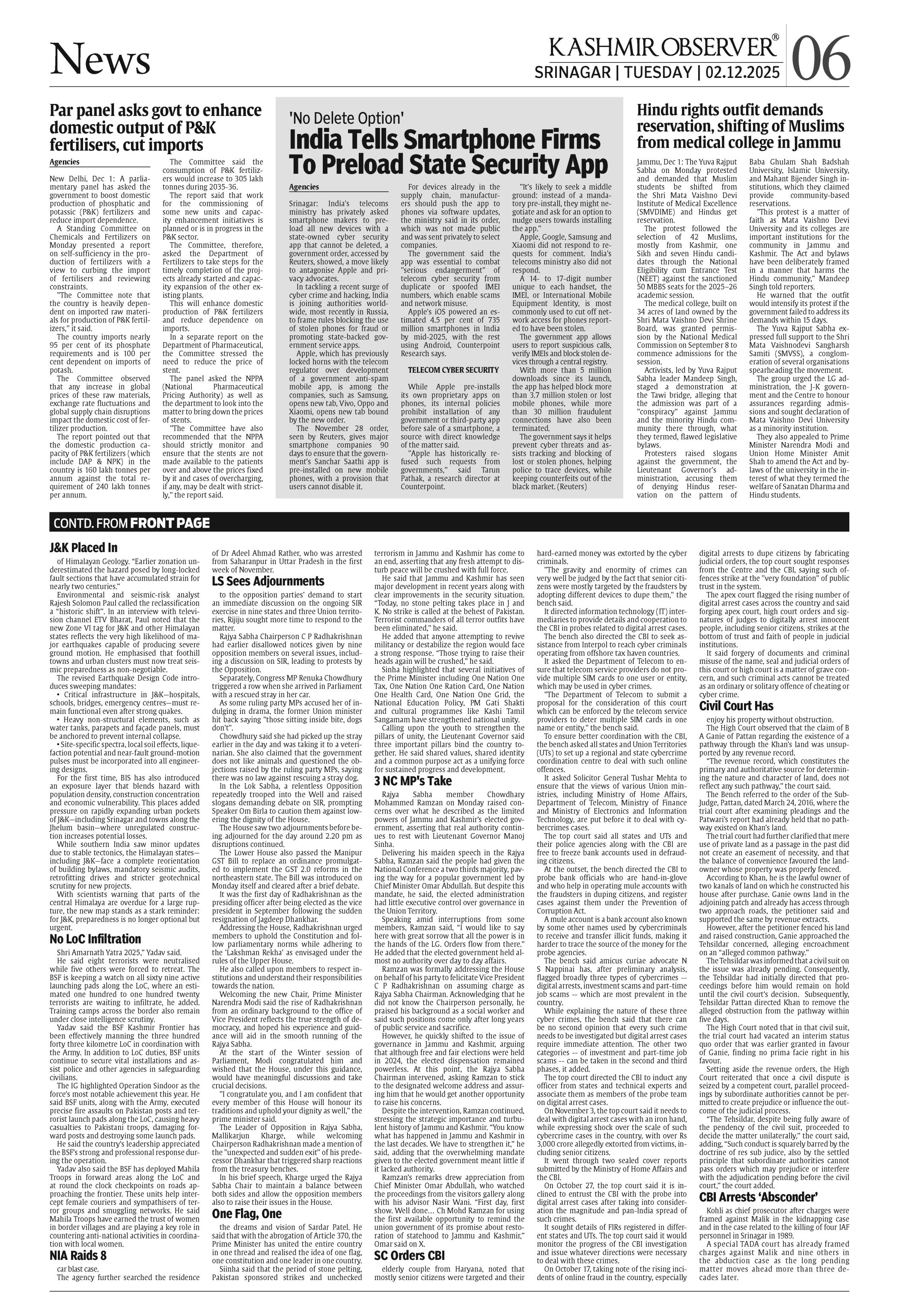 Kashmir Observer 02 Dec 2025 Page: 6