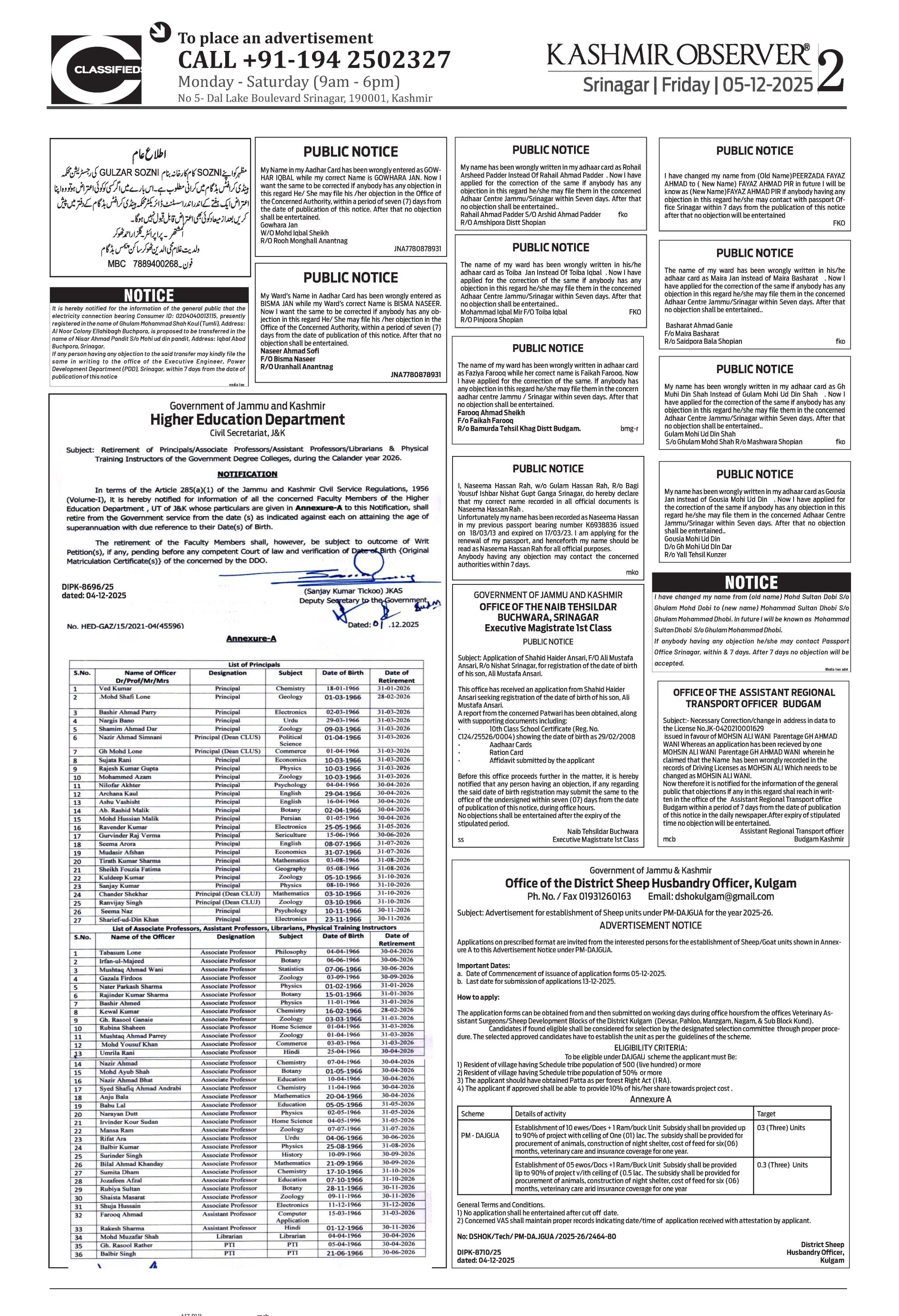 Kashmir Observer 05 Dec 2025 Page: 2