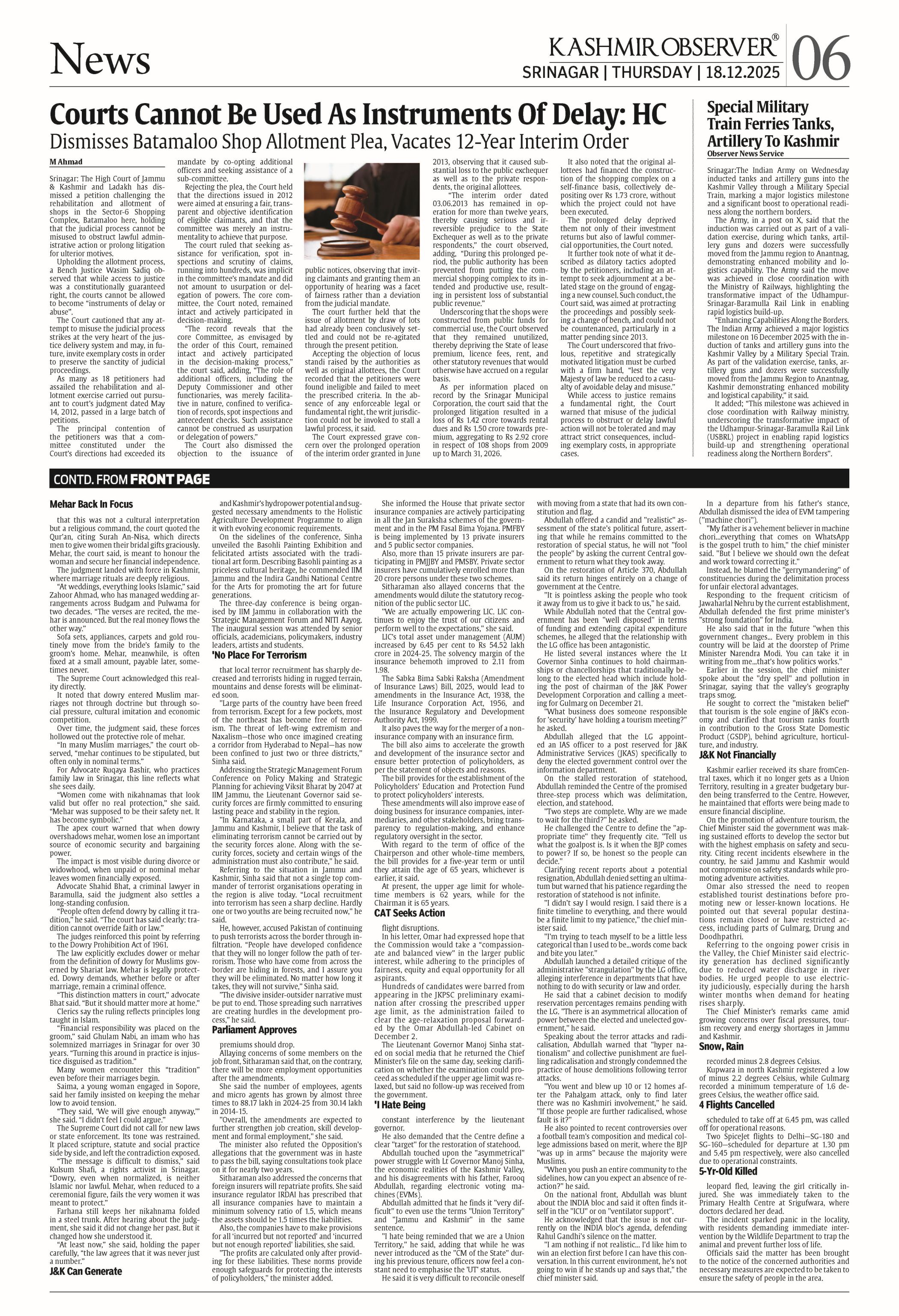 Kashmir Observer 18 Dec 2025 Page: 6