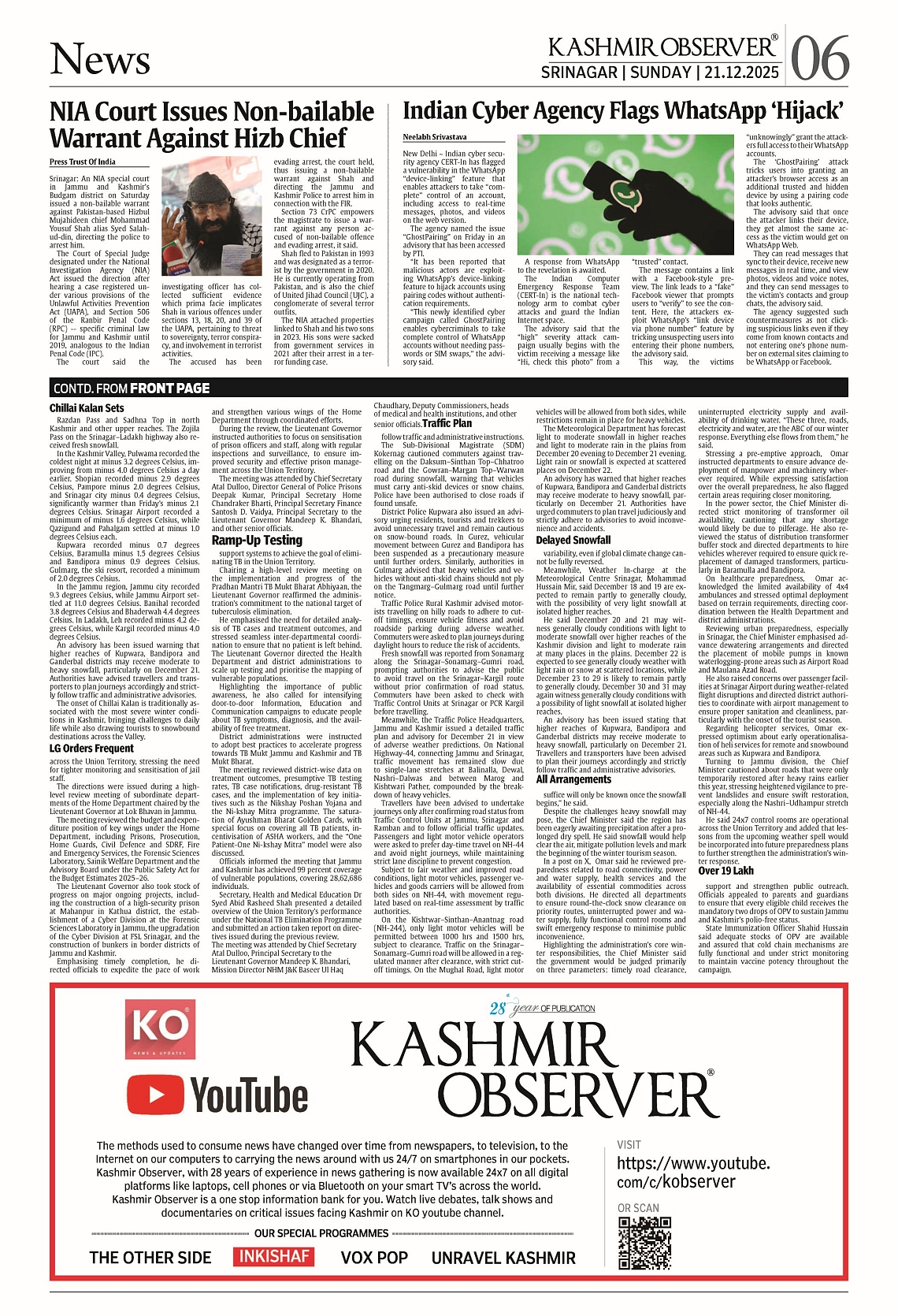 Kashmir Observer 21 Dec 2025 Page: 6